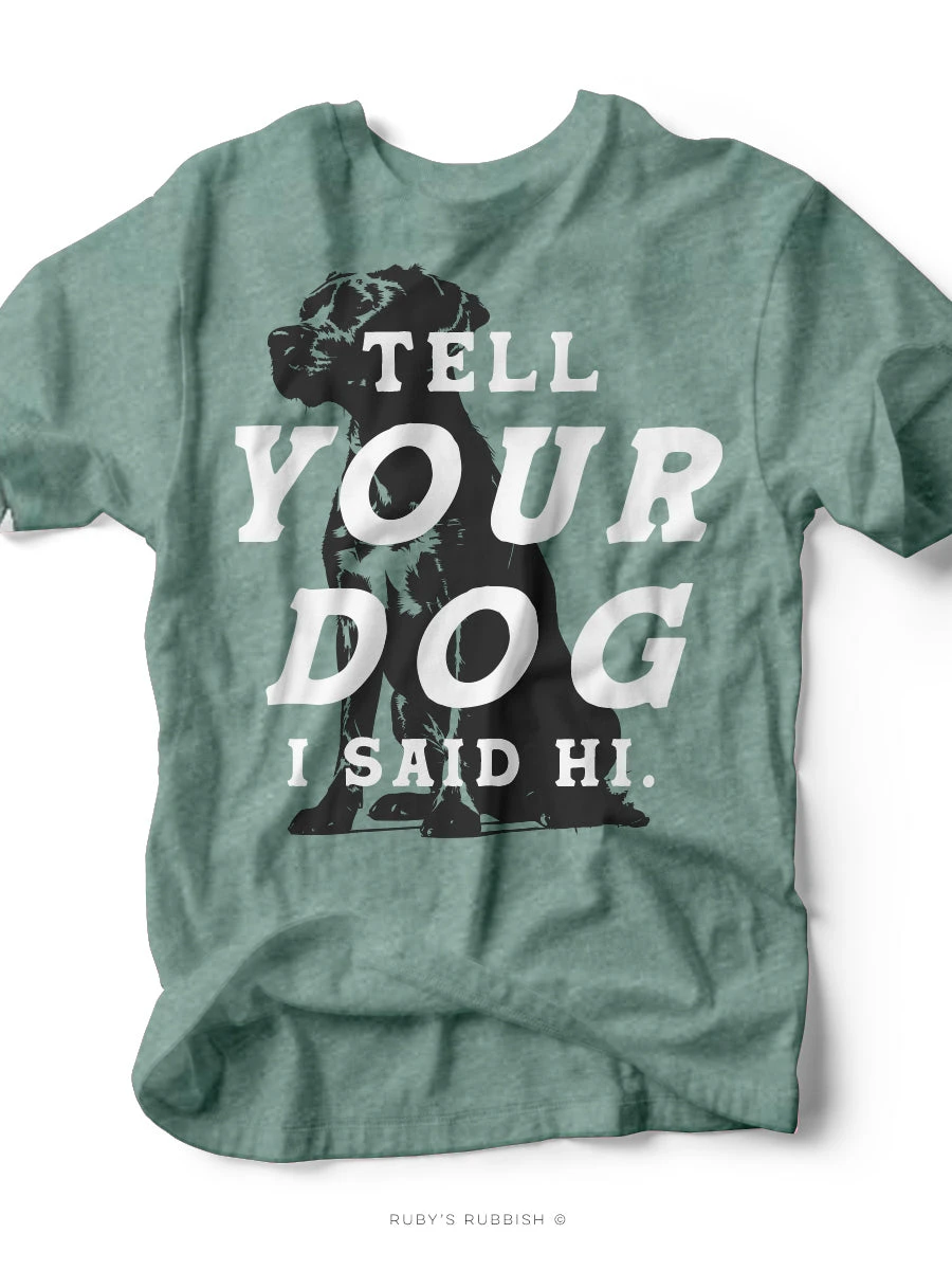 Be the first to review “Tell Your Dog I Said Hi | Dusty Blue Tee | Ruby’s Rubbish®” Cancel reply